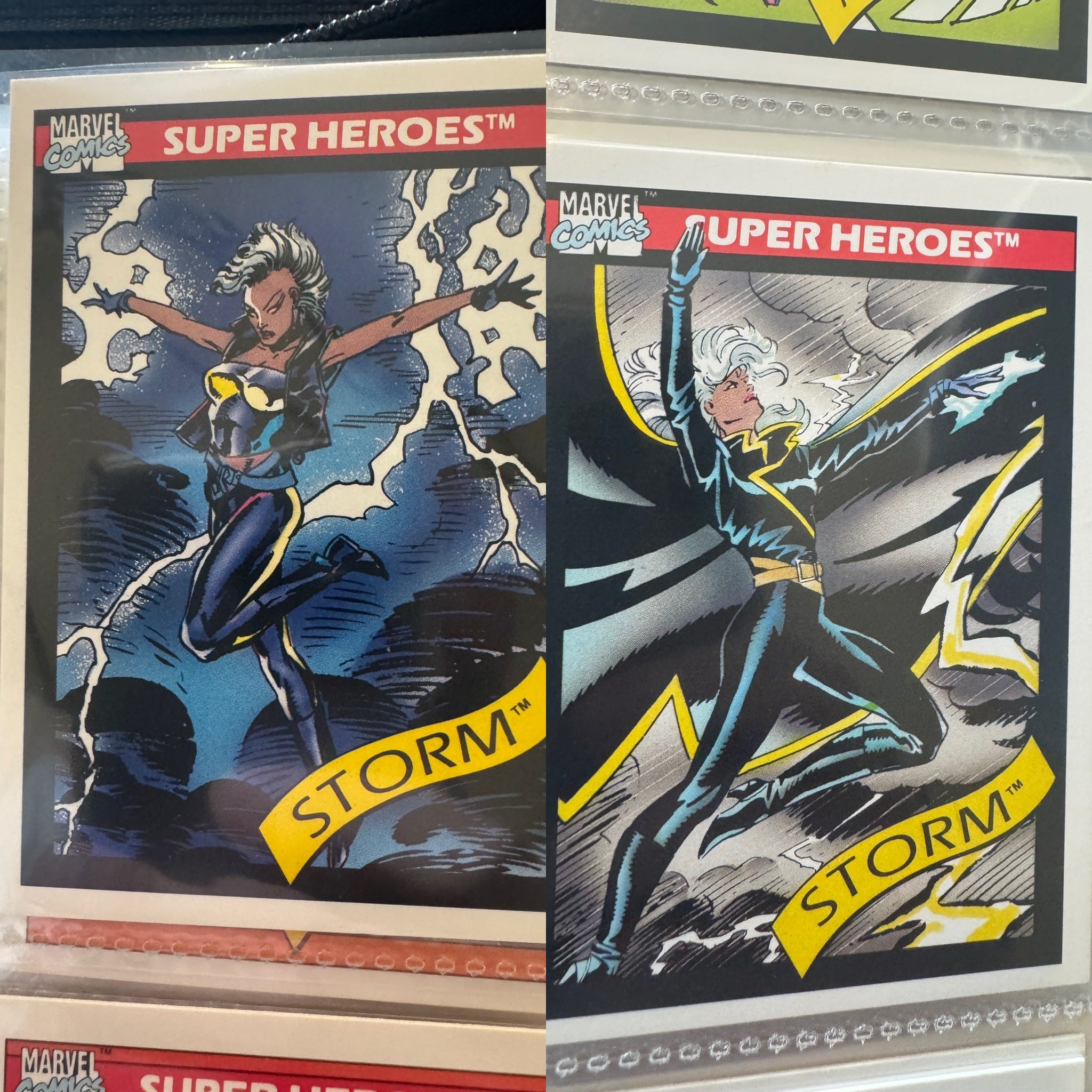 I dove all in on Marvel cards and no shit, waiting in the very first pack I opened was Wolverine! (my favorite). Then, holy shit it’s Storm! (my first crush, please forgive me Whitney Houston). I just couldn’t get enough. That summer I got most of the Marvel first wave and the next year, got the entire second wave.