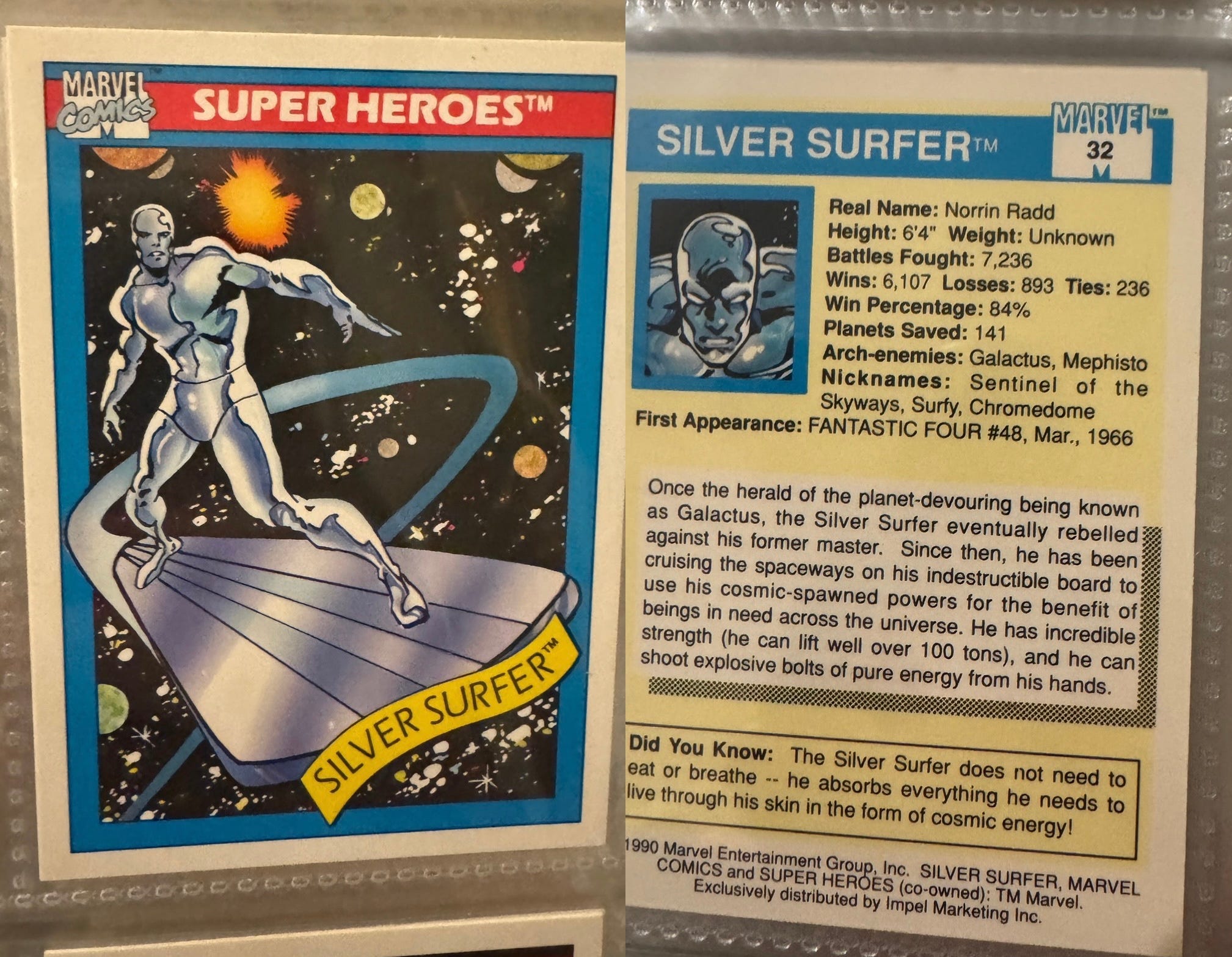 1991, the summer before we met. I had those Marvel cards as well. Of course Wolverine was my favorite as well as Ghost Rider and The Punisher. Those Sal-limon packets were super addictive though.